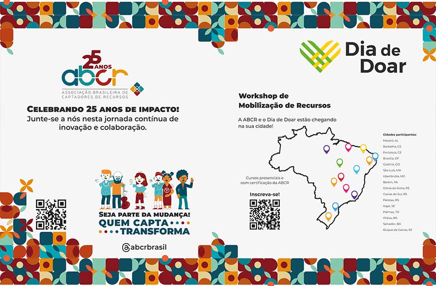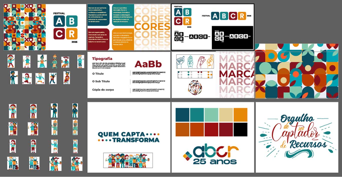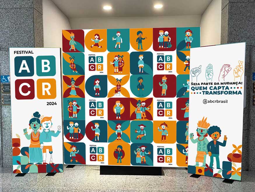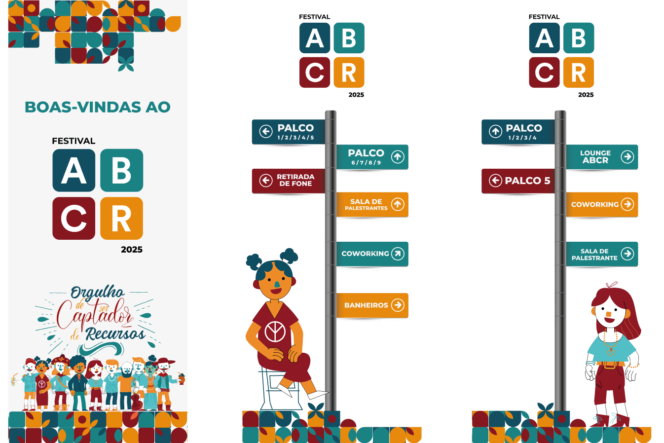 Entregamos o Key Visual e a direção de arte completa do festival, com peças para redes sociais, vinhetas e motion graphics utilizados tanto na divulgação quanto em momentos-chave do evento (intervalos, conteúdos patrocinados e letreiros). No ambiente físico, desenvolvemos programação impressa e animada, crachás, totens, adesivos, camisetas, backdrops, banners de palco e templates de apresentação (PPT) para palestrantes. No digital, estruturamos o site do Festival ABCR em WordPress, com apresentação institucional do evento, agenda dinâmica com sinalização em tempo real de início e duração das palestras, além de páginas dedicadas a palestrantes com minicurrículo e formulário para agendamento de mentorias.